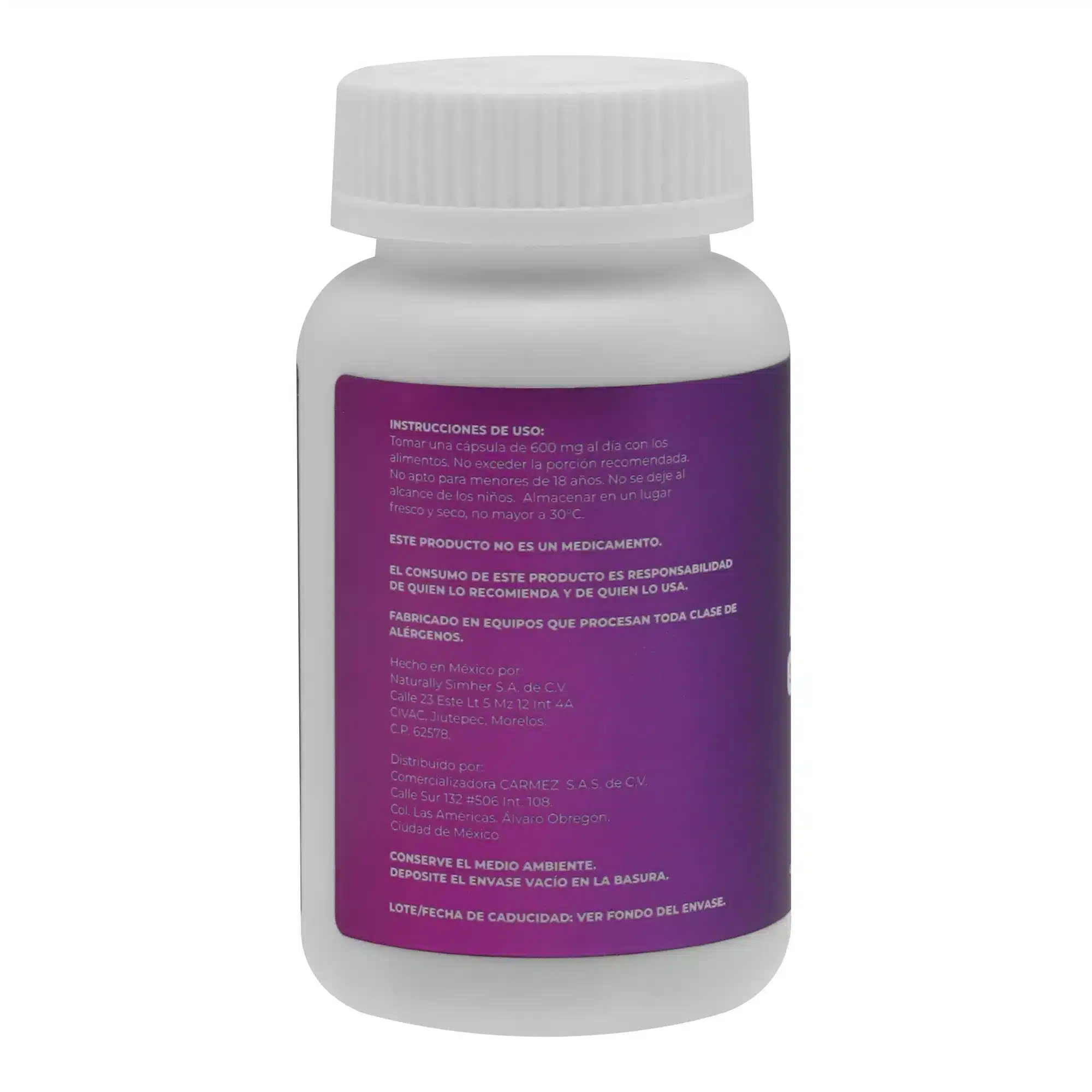 Cont. Neto. 30 cápsulas de 600 mg