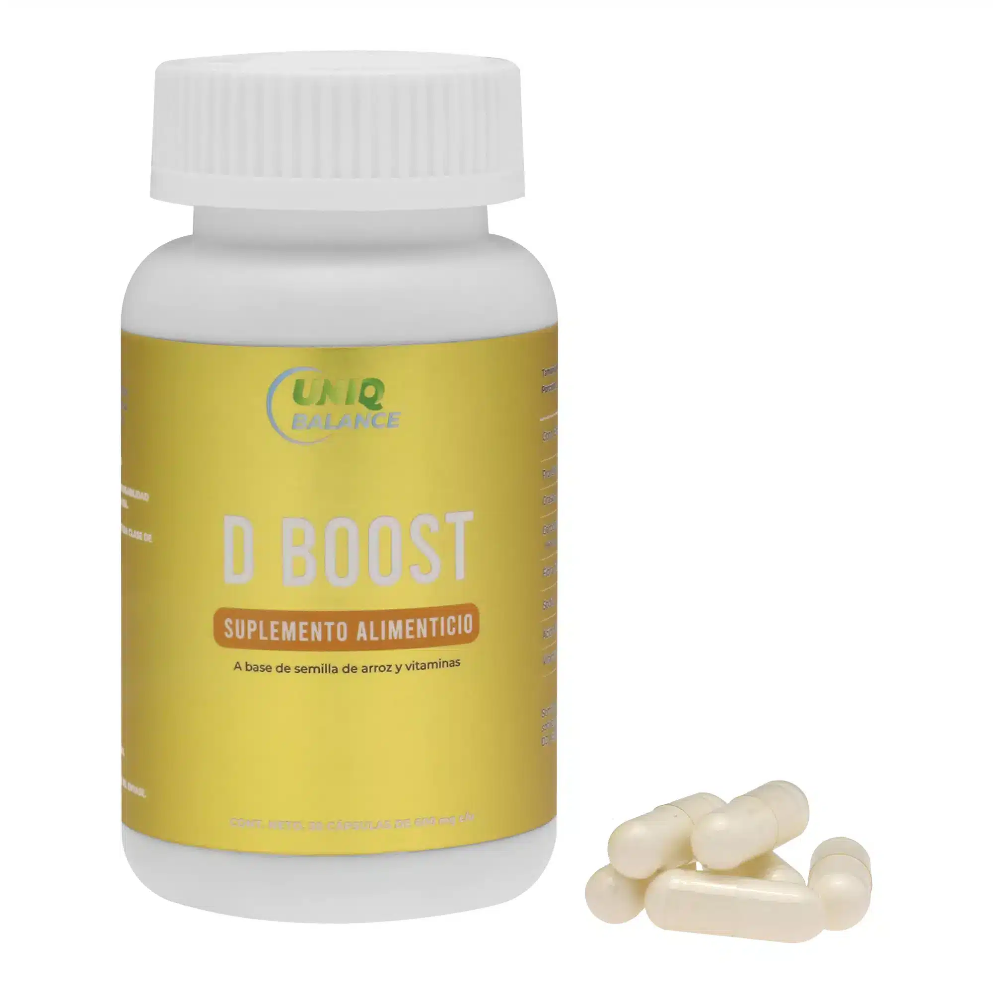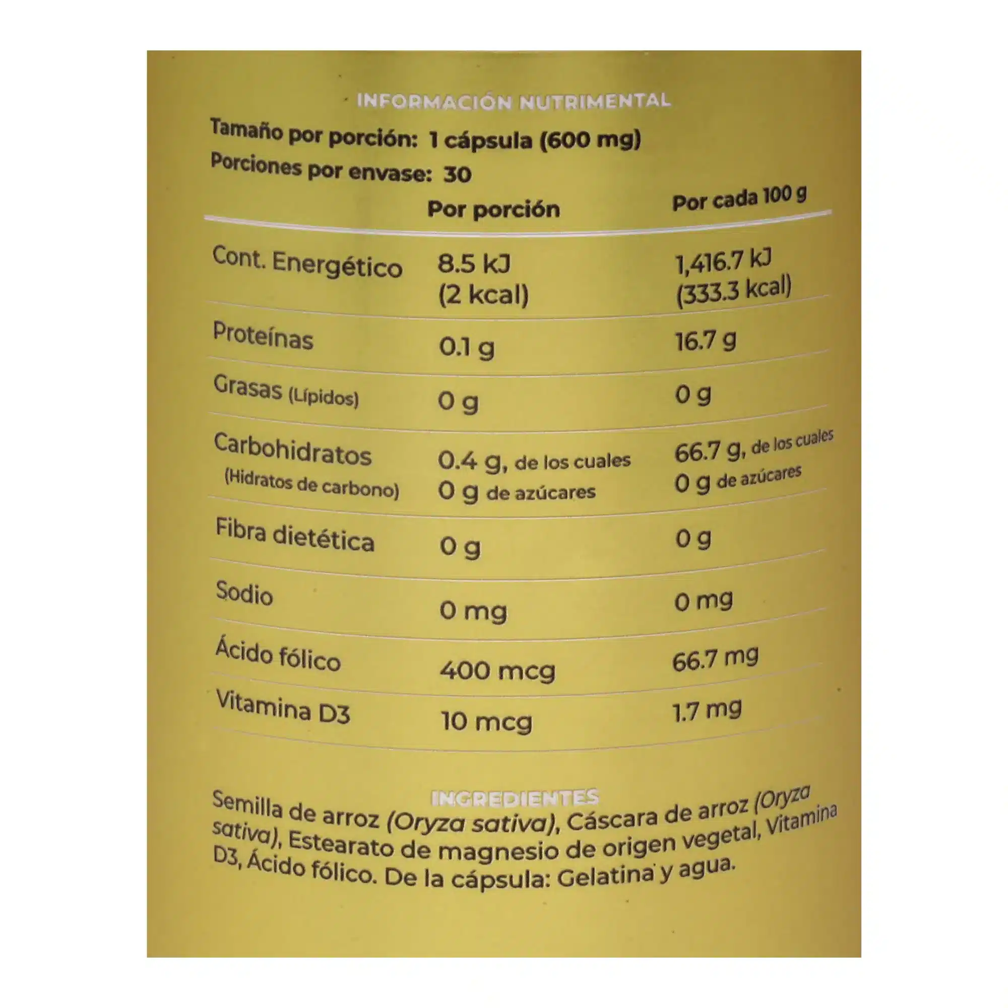Suplemento alimenticio a base de semilla de arroz y vitaminas.
